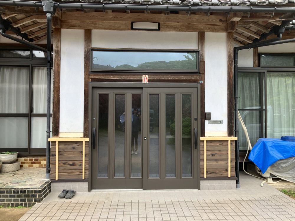 建築情報 久美浜 住宅 改修 リフォーム 企画 設計 施工 【住宅玄関・サッシリフォーム工事】京丹後市 住宅の玄関・サッシリフォーム工事です。 ・木製の玄関引き違い戸と木製窓をアルミサッシに取り換えました。 ・隙間風も防げて、だんねつこうかのが格段に向上するペアガラスを採用。 ・防音の効果も高まり、静かで快適な温度で過ごしていただけます。 「アルミサッシは台風が来ても安心ですね。」 京丹後市内での部屋リフォームはお気軽にお問い合わせください。 現地確認・見積り無料です! 工事前。 工事前。 工事中。 工事中。 工事完成。 工事完成。